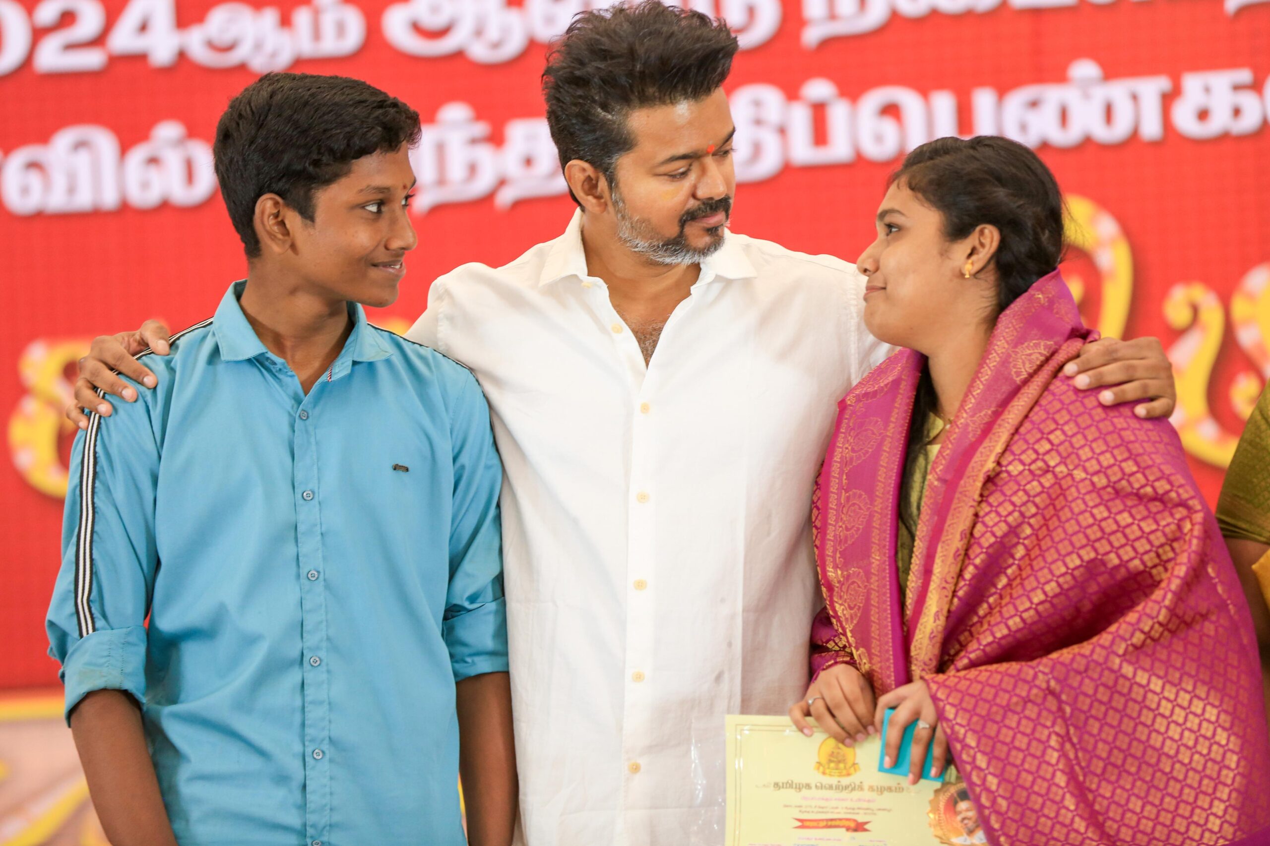 இந்த ஆண்டு தமிழக வெற்றி கழக கட்சித் தலைவராக மீண்டும் இந்த கல்வி விருது வழங்கும் விழாவின் மூலம் 21 மாவட்டங்களைச் சேர்ந்த 10-ஆம் வகுப்பு மற்றும் 12-ஆம் வகுப்புத் தேர்வில் தமிழ்நாடு மற்றும் புதுச்சேரியில் தொகுதிகள் வாரியாக தேர்ச்சி பெற்ற மாணவ, மாணவியருக்கு, அவர்களது பெற்றோர் முன்னிலையில் சான்றிதழும் ஊக்கத்தக்கையும் வழங்கி கௌரவிக்கிறார்.