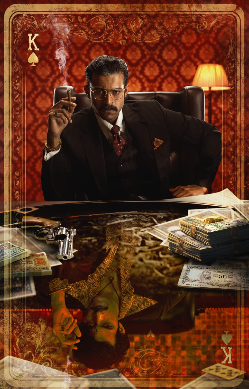 போஸ்டரிலல் வருண் தேஜ் இளமையாகவும், துணிச்சலாகவும், சுருட்டு புகைப்பதை காணலாம். அவரது டிரெஸ்ஸிங் ஸ்டைல், ஹேர் ஸ்டைல், வின்டேஜ் ஸ்டைலில் அமைந்துள்ளது. மற்றொரு தோற்றத்தில் அவர், அதே போல் சுருட்டு புகைக்கிறார் ஆனால் அவர் இங்கே பணக்காரராகவும், வயதானவராகவும், கண்ணாடி மற்றும் நரைத்த முடியுடன் இருக்கிறார். அவரது மேஜையில் துப்பாக்கி இருக்கிறது. விளையாடும் அட்டைகளில் இருந்து, கிங் அட்டை பின்னணியாக பயன்படுத்தப்படுகிறது. மிகவும் ஈர்க்கக்கூடிய இந்த ஃபர்ஸ்ட் லுக் பெரும் ஆவலைத் தூண்டுகிறது.