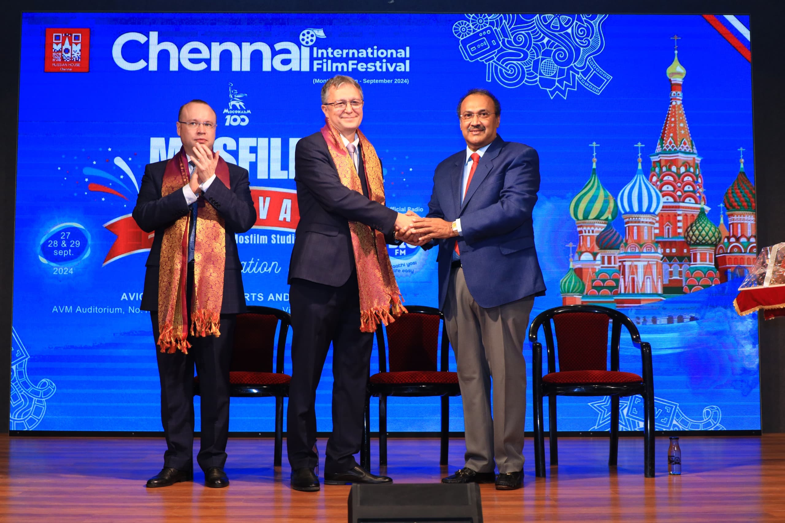 செப்டம்பர் 27, 2024- சென்னை சர்வதேச திரைப்பட விழா, ரஷ்ய அறிவியல் மற்றும் கலாச்சார மையத்துடன் இணைந்து, ஆவிச்சி கலை மற்றும் அறிவியல் கல்லூரியின் ஏ.வி.எம் ஆடிட்டோரியத்தில் இன்று MOSFILM 100- வது ஆண்டு விழாவினை பிரமாண்டமாக நடத்தியது.