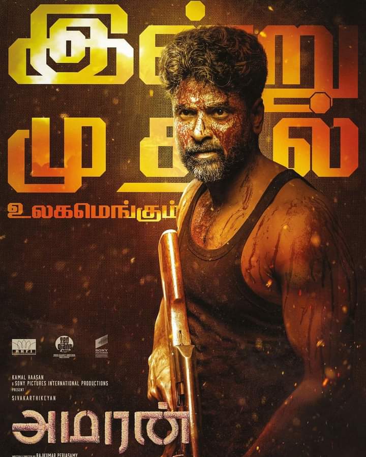 ராஜ்கமல் ஃபிலிம்ஸ் தயாரிப்பில் ராஜ்குமார் பெரியசாமி இயக்கத்தில் வெளியாகியுள்ள திரைப்படம் அமரன். மறைந்த முன்னாள் ராணுவ வீரர் மேஜர் முகுந்தின் வாழ்க்கையைத் தழுவி இப்படம் உருவாகியுள்ளது. சிவகார்த்திகேயன் மேஜர் முகுந்தாகவும் அவர் மனைவி இந்துவாக சாய் பல்லவி நடித்துள்ளார். ஜி.வி.பிரகாஷ் குமார் படத்திற்கு இசையமைத்துள்ளார்.