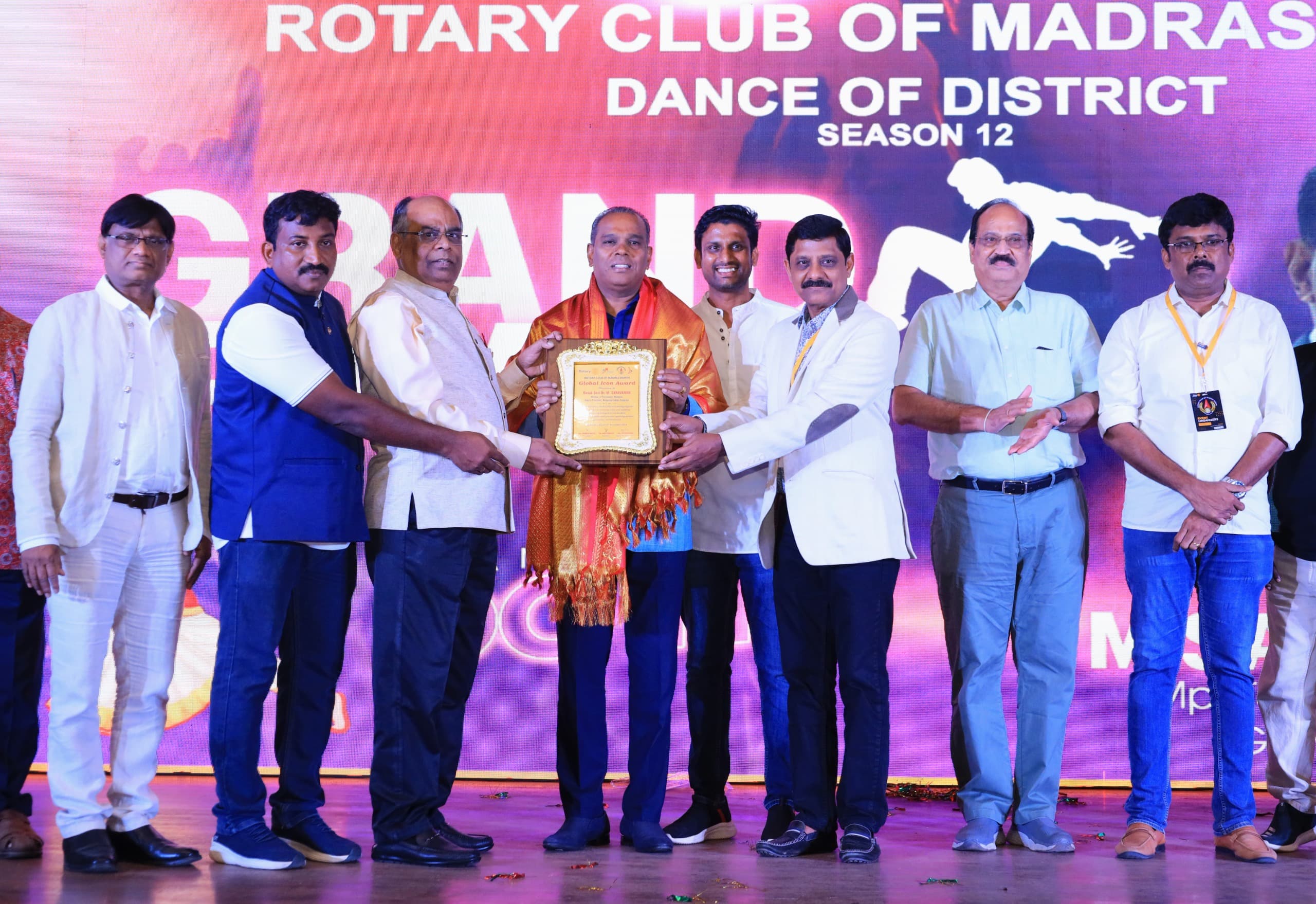 The award was presented to him at Dance of District Season 12 event held at Ethiraj College in Chennai on November 24 (Sunday). Rotary Club President Shabeer Nazeer, Secretary Mary Amutha, DOD-Chairman Joseph Raja and Director Vocational Service Priyadarshini among others were present at the function.