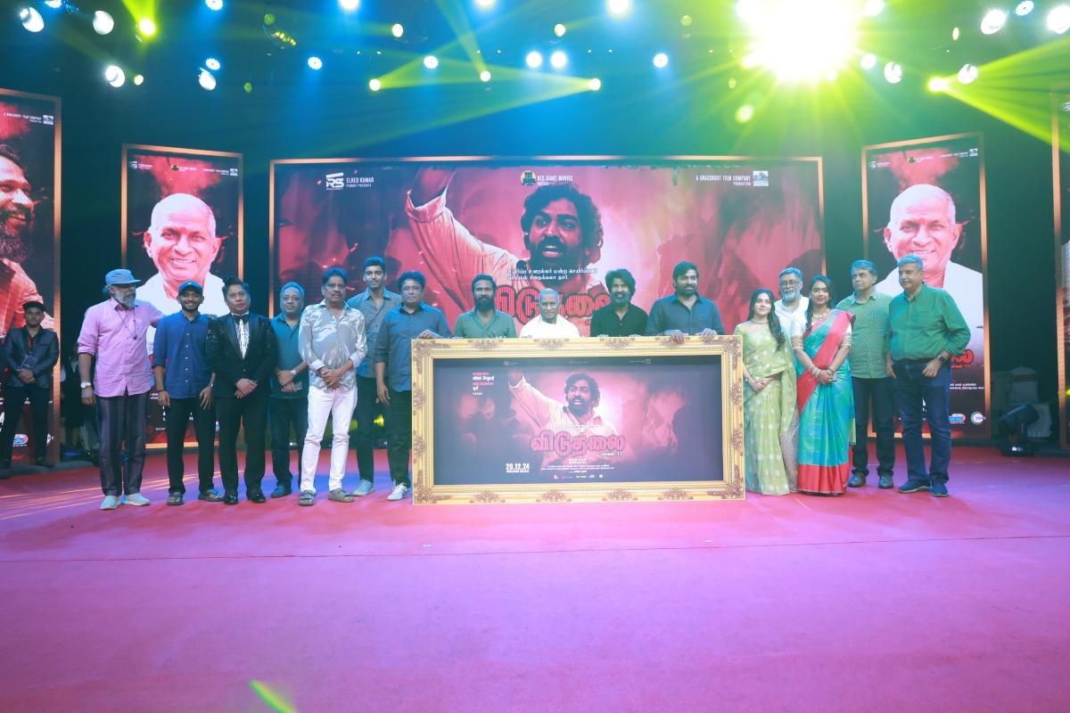 எல்ரெட் குமார் தயாரிப்பில், இயக்குநர் வெற்றிமாறன் இயக்கத்தில், நடிகர்கள் விஜய்சேதுபதி, சூரி, மஞ்சு வாரியர், பவானி ஸ்ரீ உள்ளிட்டப் பலர் நடித்திருக்கும் ‘விடுதலை2’ படம் டிசம்பர் மாதம் 20 ஆம் தேதி வெளியாகிறது. இதன் இசை மற்றும் டிரெய்லர் வெளியீட்டு விழா நடைபெற்றது.