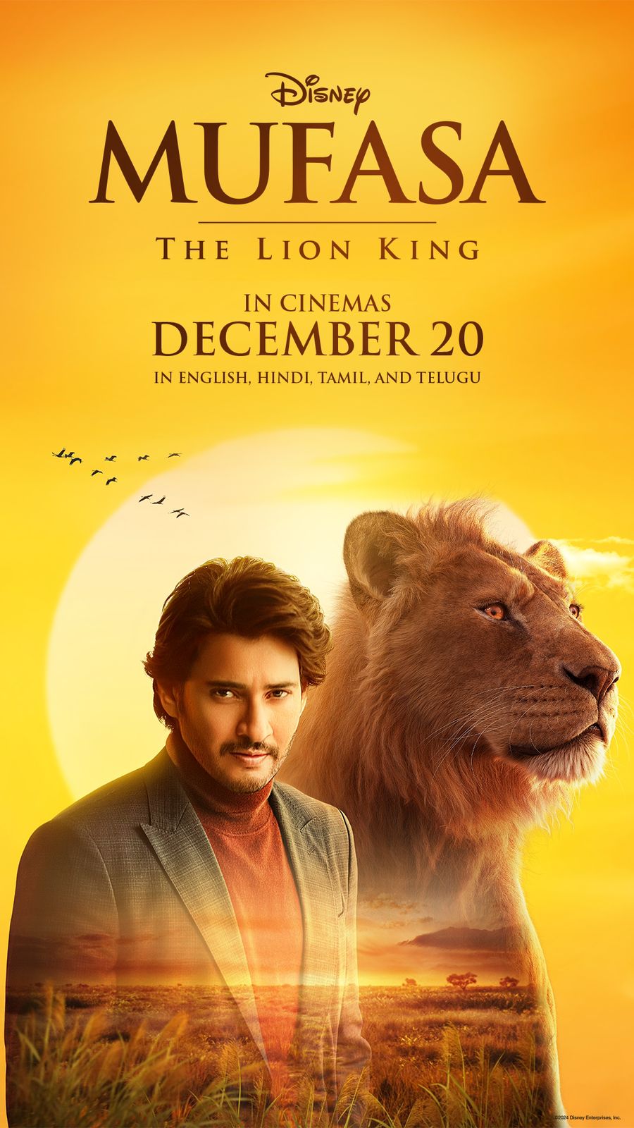 டிஸ்னியின் முஃபாசா: தி லயன் கிங் டிசம்பர் 20 ஆம் தேதி தெலுங்கில் வெளியாகிறது. இதில் சூப்பர் ஸ்டார் மகேஷ் பாபு முஃபாசாவாகவும், பிரம்மானந்தம் பும்பாவாகவும், டைமோனாக அலியும், சத்யதேவ் டாக்காவாகவும், அய்யப்பா பி ஷர்மா கீரோஸாகவும் குரல் கொடுத்துள்ளனர்.