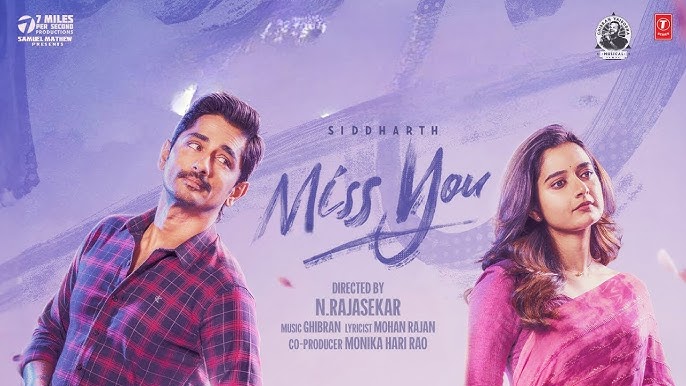 சாமுவேல் மேத்யூ தயாரிப்பில் ராஜசேகர் என் இயக்கத்தில் சித்தார்த், ஆஷிகா ரங்கநாத், பால சரவணன், லொள்ளு சபா மாறன், கருணாகரன், ஜெயபிரகாஷ், பொன்வண்ணன் மற்றும் பலர் நடித்து வெளியாகியிருக்கும் படம் மிஸ் யூ ஒளிப்பதிவு கே.ஜி.வெங்கடேஷ், இசை ஜிப்ரான், எடிட்டர் தினேஷ் பொன்ராஜ்