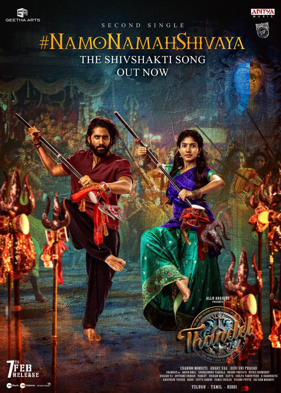 இயக்குநர் சந்து மொண்டேடி இயக்கத்தில் முன்னணி இளம் நடிகர் நாக சைதன்யா மற்றும் சாய் பல்லவி நடிப்பில் உருவாகி வரும் “தண்டேல்” திரைப்படம் பெரும் எதிர்பார்ப்பை ஏற்படுத்தியுள்ளது. புகழ்மிக்க தயாரிப்பு நிறுவனமான கீதா ஆர்ட்ஸ் பேனரின் கீழ், பன்னி வாஸ் தயாரித்து அல்லு அரவிந்த் வழங்கும், இப்படத்தின் வெளியீட்டுப் பணிகள் நடந்து வருகிறது. ராக்ஸ்டார் தேவி ஸ்ரீ பிரசாத் இசையமைக்கும், இந்தப்படத்தின் முதல் சிங்கிள் “புஜ்ஜி தல்லி” ஒரு பரபரப்பான ஹிட் ஆனது. இந்நிலையில், மிகவும் எதிர்பார்க்கப்பட்ட இரண்டாவது சிங்கிள் “நமோ நம சிவாய” பாடல் வீடியோ தற்போது வெளியிடப்பட்டுள்ளது.