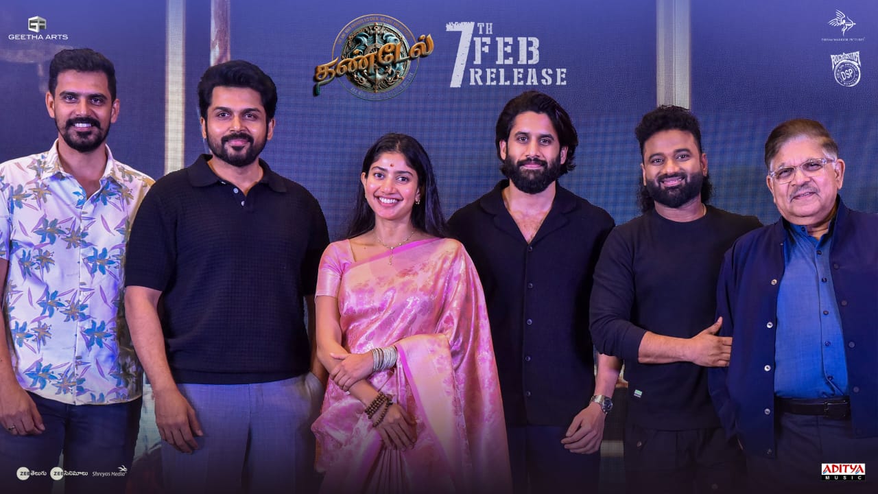 தெலுங்கு திரையுலகின் முன்னணி நட்சத்திர நடிகரான நாக சைதன்யா கதையின் நாயகனாக முதன்மையான கதாபாத்திரத்தில் நடித்திருக்கும் ‘ தண்டேல் ‘ எனும் திரைப்படத்தின் முன்னோட்டம் வெளியிடப்பட்டிருக்கிறது. இதற்காக சென்னையில் உள்ள நட்சத்திர ஹோட்டலில் நடைபெற்ற பிரத்யேக வெளியீட்டு விழாவில் தமிழின் முன்னணி நட்சத்திர நடிகரான கார்த்தி சிறப்பு விருந்தினராக கலந்து கொண்டு முன்னோட்டத்தை வெளியிட்டார்.