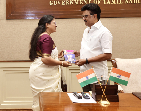 Malathy Lakshman called on Honourable Chief Minister M. K. Stalin and received his greetings