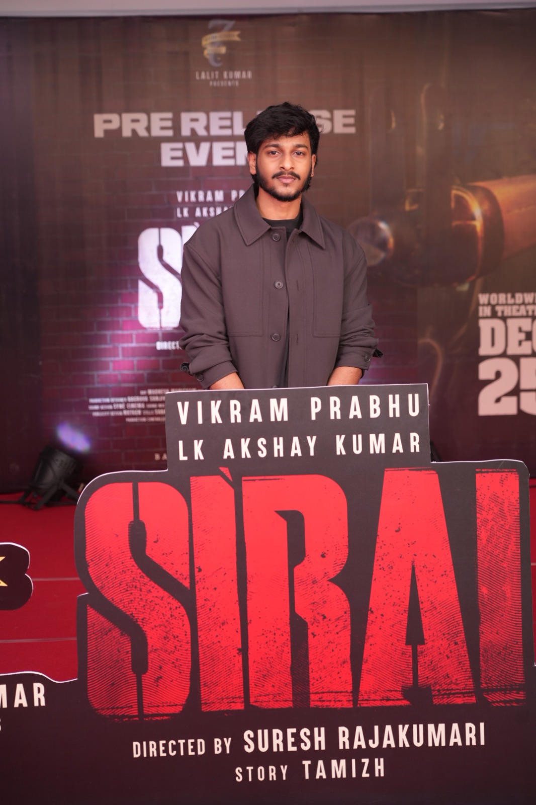 இந்த வருடம் எனக்கு மிகவும் ஸ்பெஷல். நான் தயாரிப்பாளராக ஆக ஆசைப்பட்டதில்லை, இயக்குநராக ஆசைப்பட்டு ஏதோ ஒரு வழியில் தயாரிப்பாளர் ஆகிவிட்டேன். என்னை மிக மரியாதையாக நடத்திய லலித் சாருக்கு என் நன்றி. அக்ஷய் சில வருடங்கள் முன் துக்ளக் தர்பார் படத்தில் ஒரு சின்ன ரோலில் நடித்தார். அவர் மீண்டும் நடிப்பார் என நினைக்கவில்லை. இந்தப்படம் பார்த்துவிட்டேன், சமீபத்தில் ஒரு படம் பார்த்து விட்டு நண்பர்களுடன் 2 மணி நேரம் பேசியது இந்தப்படம் தான். லலித் சார் ஆரம்ப காலத்தில் பால் போட்டுக்கொண்டிருந்தார், அவர் சொந்த உழைப்பில் கொஞ்சம் கொஞ்சமாக இத்தனை பெரிய தயாரிப்பாளராக மாறியுள்ளார். அவர் மிக கண்டிப்பான தெளிவான தயாரிப்பாளர். அவர் ஒரு விசயத்தில் இறங்கினால் கண்டிப்பாக அதை முழுமையான படைப்பாக முடித்துக் கொண்டு வரும் தெளிவு இருந்தால் தான் செய்வார். இந்த வருடத்தில் நான் பார்த்த மிகச்சிறந்த படம் என்றால் அது சிறை தான். உங்களுக்கு முழுமையாக முக்கியமான கருத்தை வலுவாக சொல்லி, உங்களைத் திருப்தி படுத்தும் படமாக இருக்கும். யாருமே இதை முதல் இயக்குநரின் படமென சொல்ல முடியாது. சுரேஷ் அற்புதமாக இயக்கியுள்ளார். விக்ரம் பிரபு சாரில் ஆரம்பித்து, ஒவ்வொருவரும் அத்தனை சிறப்பாக நடித்துள்ளனர். முதல் ஃப்ரேமிலேயே இந்தப்படம் உங்களைக் கவர்ந்து விடும். இஸ்லாமிய பெயரை மையப்படுத்தி கடைசியாக வந்த படம் மாநாடு தான், ஆனால் இந்தப்படம் அதைத்தாண்டி ஒரு முக்கிய அம்சத்தைப் பேசும் படமாக வந்துள்ளது. வசூலிலும் இப்படம் ஜெயிக்கும் படக்குழு அனைவருக்கும் வாழ்த்துக்கள்.