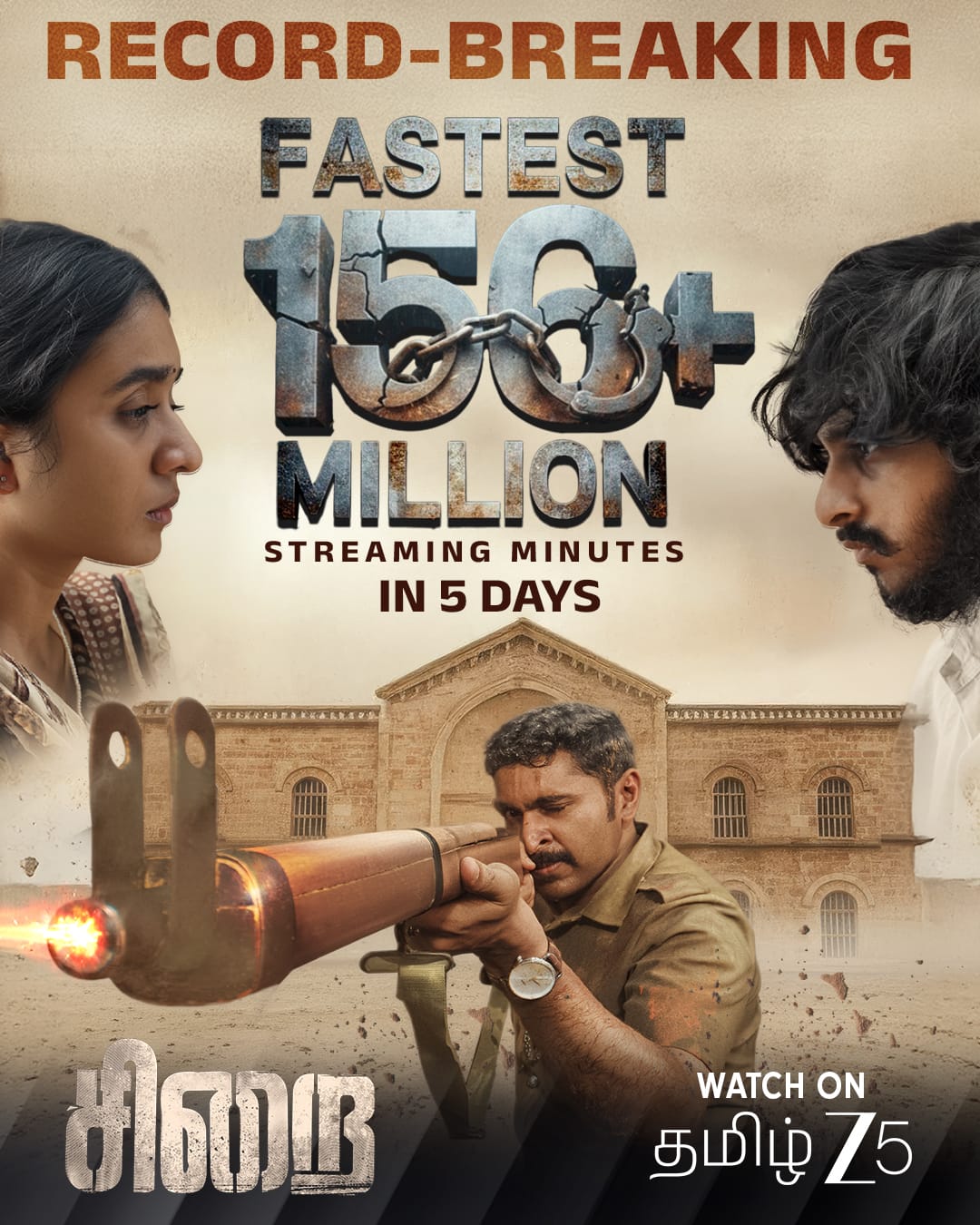 ZEE5 தளத்தில் வெளியான ‘சிறை’ திரைப்படம், மிகக் குறுகிய காலத்திலேயே 156 மில்லியன் பார்வை நிமிடங்களை கடந்து ஓடிடி உலகில் புதிய சாதனையை படைத்துள்ளது. திரையரங்குகளில் வெற்றிகரமாக ஓடிய பின்னர் டிஜிட்டல் வெளியீடு கண்ட இந்த படம், உண்மைச் சம்பவத்தை அடிப்படையாக கொண்ட வலுவான கதைக்களத்தால் பார்வையாளர்களின் கவனத்தை முழுமையாகக் கவர்ந்துள்ளது.