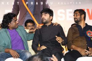 தயாரிப்பாளர் எஸ்.ஆர்.பிரபு பேசும்போது, “நானும் வெங்கட் பிரபுவும் சேர்ந்து பிரியாணி படம் பண்ணிய சமயத்துலே இந்த கதையை அவர் என்னிடம் சொல்லிருக்கார்.. சொல்லப்போனா இந்தப்படத்தோட கதையில இருந்து கிளைக்கதையா தான் பிரியாணி உருவானது. சிம்பு சார் இந்தப்படத்துல நான் வந்துட்டேனு ஒரு வசனம் பேசுறார். அவர் இப்படி சொல்றது இதுவே கடைசி தடவையா இருக்கட்டும்.. வெற்றி மட்டும் அவருக்கு ரிப்பீட் ஆகிட்டே இருக்கட்டும்” என்றார்.