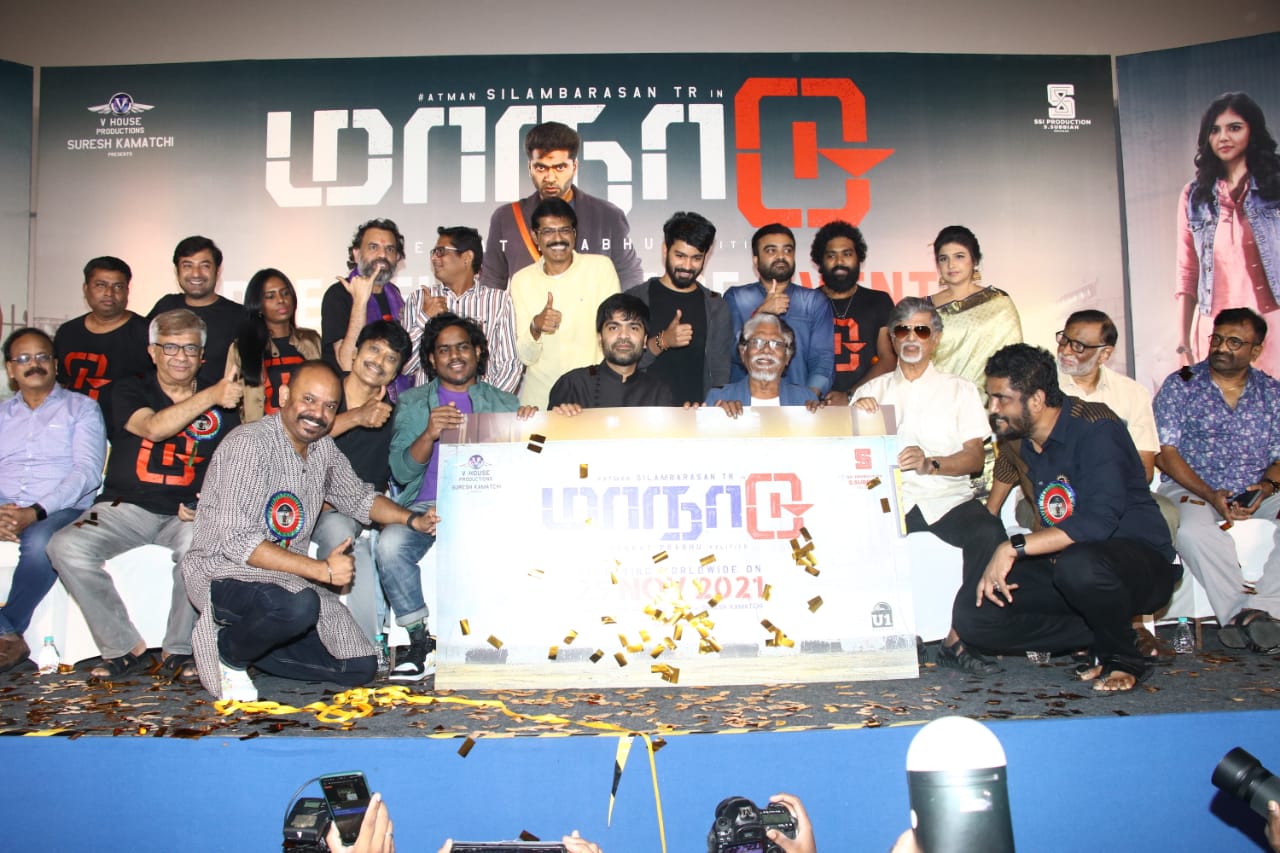 வி ஹவுஸ் புரொடக்சன் சார்பாக சுரேஷ் காமாட்சி தயாரிப்பில் வெங்கட்பிரபு இயக்கத்தில் சிலம்பரசன் நடித்துள்ள படம் ‘மாநாடு’.