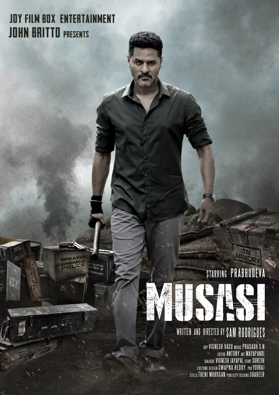 அறிமுக இயக்குநர் ஷாம் ரோட்ரிக்ஸ் இயக்கத்தில் தயாராகும் முதல் திரைப்படம் “முசாசி” ஆக்சன் எண்டர்டெய்னர் ஜானரில் தயாராகும் இந்த திரைப்படத்தில் ‘நடனப்புயல்’ பிரபுதேவா கதையின் நாயகனாக நடிக்கிறார். சவாலான போலீஸ் அதிகாரி வேடமேற்றிருக்கும் பிரபுதேவாவிற்கு இந்த படத்தில் ஜோடியில்லை. இவருடன் நடிகர்கள் ஜான் விஜய், விடிவி கணேஷ், ஜார்ஜ் மரியான், மலையாள நடிகர் பினு பப்பு, அருள்தாஸ், நடிகர் ‘மாஸ்டர்’ மகேந்திரன், ‘பழைய ஜோக்’ தங்கதுரை, மகேஷ், மலையாள நடிகை லியோனா லிஷாய் உள்ளிட்ட பலர் நடிக்கிறார்கள். விக்னேஷ் ஒளிப்பதிவு செய்யும் இந்தப் படத்திற்கு, எஸ். என். பிரசாத் இசையமைக்கிறார். இந்த படத்தை ஜாய் ஃபிலிம் பாக்ஸ் எண்டர்டெய்ன்மெண்ட் என்ற பட தயாரிப்பு நிறுவனம் சார்பில் தயாரிப்பாளர் ஜான் பிரிட்டோ பிரம்மாண்டமான பொருட்செலவில் தயாரித்திருக்கிறார்.