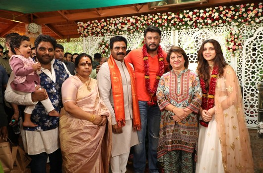 மறைந்த பிரபல கன்னட தயாரிப்பாளர் ராமு மற்றும் பிரபல சீனியர் நடிகை மாலாஸ்ரீ ஆகியோரின் மகள் ராதனா ராம் முதன்முதலாக கன்னட திரையுலகின் சேலஞ்சிங் ஸ்டார் என அழைக்கப்படும் நடிகர் தர்ஷன் ஜோடியாக ‘D56’ என தற்காலிகமாக பெயரிடப்பட்டுள்ள படத்தில் கதாநாயகியாக அறிமுகமாகிறார். பெங்களூரில் உள்ள ஸ்ரீ ரவிசங்கர் குருஜியின் ஆசிரமத்தில் வரலட்சுமி பண்டிகை நன்னாளில் நேற்று இந்த படத்தின் துவக்க விழா பூஜை நடைபெற்றது.இந்த நிகழ்வில் நேரில் கலந்துகொண்ட ஸ்ரீ ரவிசங்கர் குருஜி கேமராவை சுவிட்ச் ஆன் செய்து இந்த படத்தின் முதல் ஷாட்டை துவங்கி வைத்தார். ராக்லைன் புரடக்சன்ஸ் நிறுவனம் சார்பில் பிரபல தயாரிப்பாளர் ராக்லைன் வெங்கடேஷ் இந்த படத்தை தயாரிக்கிறார். ராபர்ட் பட புகழ் தருண் சுதிர் இந்த படத்தை எழுதி இயக்குகிறார்.