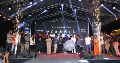 இயக்குநர் பா ரஞ்சித் இயக்கத்தில், யாழி ஃபிலிம்ஸ் நிறுவனத்துடன் இணைந்து நீலம் புரடக்சன்ஸ் தயாரித்துள்ள திரைப்படம் ‘நட்சத்திரம் நகர்கிறது’. காதலை மாறுபட்ட கோணத்தில் அதன் அரசியலை பேசும் இப்படத்தில் காளிதாஸ் ஜெயராம், துஷாரா, கலையரசன், டான்ஸிங் ரோஸ் கபீர் ஆகியோருடன் ஒரு பெரும் நட்சத்திரக் கூட்டம் இணைந்து நடித்துள்ளனர்.  இத்திரைப்படம் ஆகஸ்ட் 31-ஆம் தேதி உலகமெங்கும் திரையரங்குகளில் வெளியாகிறது. இந்நிலையில் இப்படத்தின் இசை வெளியீட்டு விழா திரைபிரபலங்கள் மற்றும் படக்குழுவினர் கலந்துகொள்ள கோலாகலமாக நடைபெற்றது.