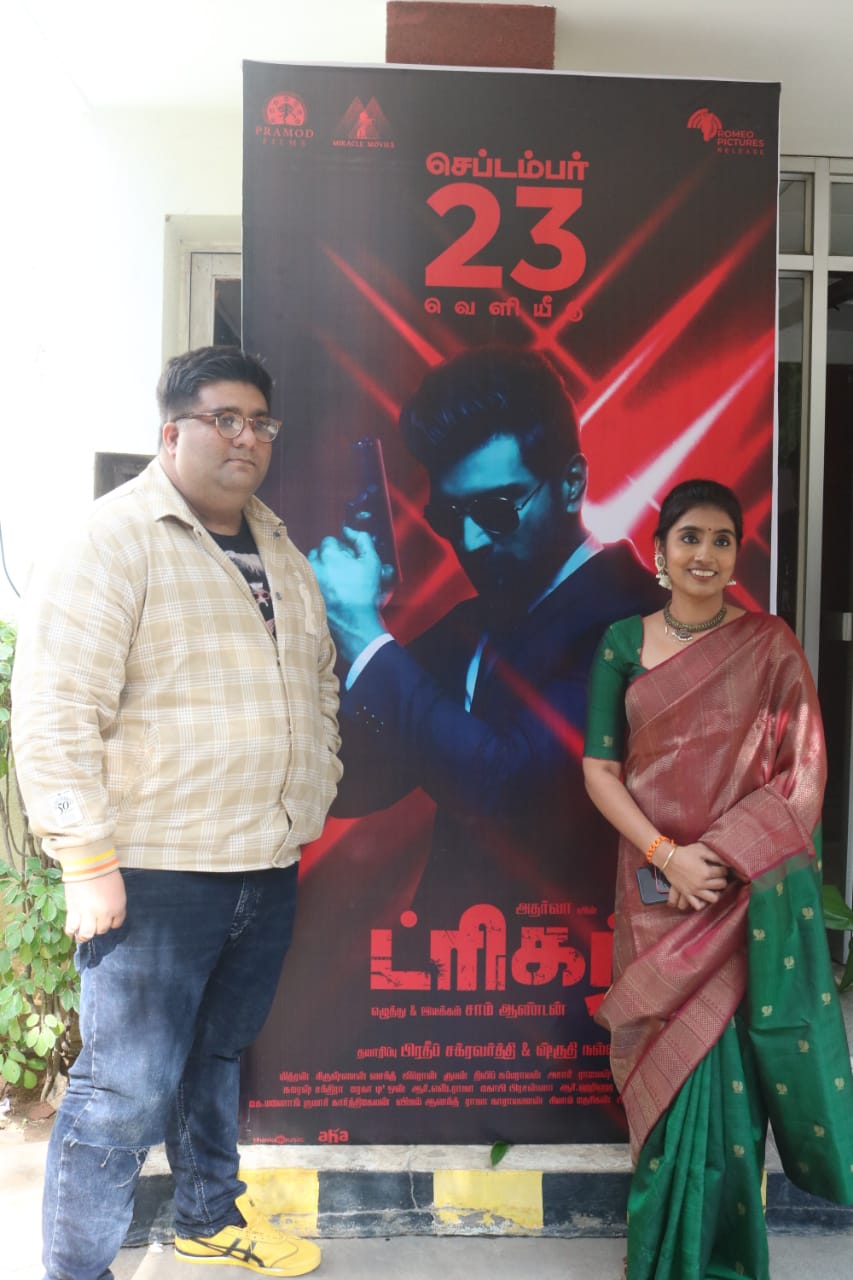 PRAMOD FILMS சார்பில் பிரதீக் சக்ரவர்த்தி & சுருதி நல்லப்பா வழங்கும், சாம் ஆண்டன் இயக்கத்தில், அதர்வா முரளி நடிக்கும் திரைப்படம் “ட்ரிகர்” இப்படம் தூண்டல் எனும் அடிப்படையில் புதுமையான திரைகதையில் பரபரப்பான திரில்லராக உருவாகியுள்ளது. இப்படம் செப்டம்பர் 23 ஆம் தேதி உலகமெங்கும் வெளியாகிறது. பட வெளியீட்டை ஒட்டி படக்குழு பத்திரிக்கை ஊடக நண்பர்களை சந்தித்தனர்.