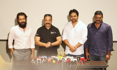 பொன்னியின் செல்வனில் நான் நடிப்பதாக இருந்த கதாபாத்திரத்தில் தம்பி கார்த்தி நடித்திருக்கிறார். இந்தப் படத்தில் பல வேடங்களில் நானே நடிக்க வேண்டுமென்று நினைத்திருந்தேன். போர்க்கள காட்சிகளை படமாக்குவது எத்தனை கடினம் என்பது எமக்குத் தெரியும். கத்தி, கேடயம், கவசம், கிரீடம், குதிரை, புழுதி இதனுடன் நடிப்பு என எல்லாவற்றையும் நன்றாக செய்ய வேண்டும். இவை எல்லாவற்றையும் சீயான் விக்ரம் மிக நன்றாக செய்திருக்கிறார். இந்த படத்தை பார்க்கும் போது நான் தயாரித்தது போன்ற ஒரு மகிழ்ச்சி இருக்கிறது. அதுவும் உண்மை. ஏனென்றால் தமிழ் சினிமா தயாரித்திருக்கிறது. இந்த புத்துணர்ச்சி நீடிக்க வேண்டும். இந்த உணர்வும், கூட்டுறவும் நீடிக்க வேண்டும். நாளை என்னுடைய படத்திற்கும் நீங்கள் இதுபோல் கொண்டாட வேண்டும்.” என்றார்.