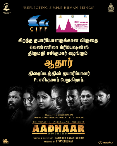 வெண்ணிலா கிரியேஷன்ஸ் எனும் பட நிறுவனம் சார்பில் திருமதி சசிகுமார் வழங்க, இயக்குநர் ராம்நாத் பழனி குமார் இயக்கத்தில், வெளியான திரைப்படம் ‘ஆதார்’. எளிய மனிதர்களின் யதார்த்த வாழ்வியலை அழுத்தமாக பதிவு செய்திருந்த இந்தத் திரைப்படம், வெளியாகி விமர்சன ரீதியாக நல்லதொரு வரவேற்பை பெற்றது.