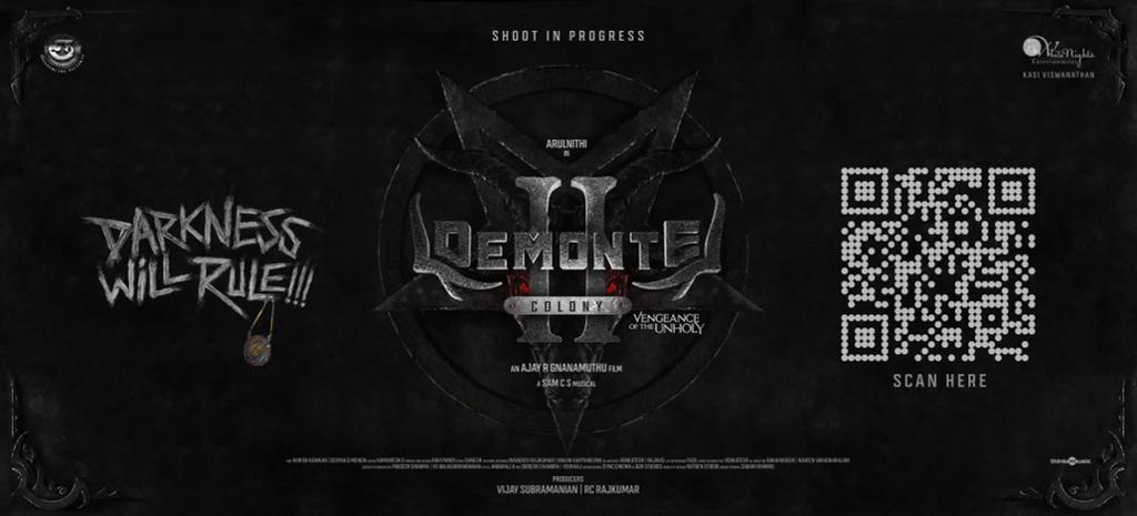 ‘டிமாண்டி காலனி2’ படத்தின் டேக்காக ‘Vengeance of Unholy’ பதிவு செய்யப்பட்டு இருக்கிறது. அருள்நிதி, பிரியா பவானி சங்கர் ஆகியோர் படத்தில் முன்னணி கதாபாத்திரத்தில் நடித்து வருகின்றனர்.