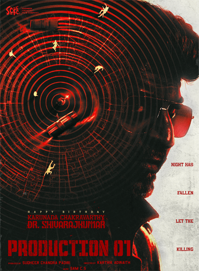 #ShivannaSCFC01 is going to be a high-budget movie that will have strong technical support. Sam CS of Vikram Veda and Kaithi (Khaidi in Telugu) fame helms the music. This character concept poster of Dr. Shivaraj Kumar along with crew names is just a hint that it’s a high-octane action thriller. Sporting shades, Shivaraj Kumar gives a serious gaze in the poster. “Night has fallen let the killing begin!,” reads the poster which creates interest to know more about the movie.