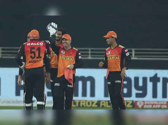 துபாய் மைதானத்தில் இன்று நடைபெற்ற போட்டியில் டாஸ் வென்ற சன் ரைசர்ஸ் ஹைதராபாத் அணி முதலில் பேட்டிங்கை தேர்வு செய்தது. துவக்க வீரர்கள் டேவிட் வார்னர், ஜானி பேர்ஸ்டோ இருவரும் 15 ஓவர்கள் வரை பார்ட்னர்ஷிப் அமைத்து ரன்களை சேர்த்தனர். டேவிட் வார்னர் 40 பந்துகளில் 52 ரன்கள் சேர்த்து ஆட்டமிழந்தார்.