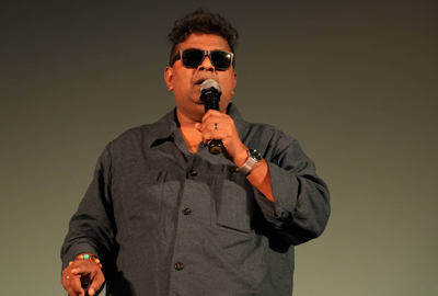 ஒரு எட்டு வயதாக இருக்கும் போது என் தந்தையின் தோள்களில் அமர்ந்து சவாரி செல்லும் போது, ‘அன்னகிளியே உன்னத் தேடுதே…” பாடலைக் கேட்டு என் அப்பனின் தலைமுடியைப்  பற்றி இழுத்து நிறுத்தி அப்பாடலைக் கேட்டேன். அன்று முதல் அவர் எனக்கு குருநாதர் தான். பின்னர் ஏன் இசையமைக்க வந்தாய் என்று கேட்கிறீர்களா..? அவருடன் சண்டை போட்டுவிட்டேன்.. எனக்கு கொஞ்சம் கோபம் அதிகமாக வரும். மீண்டும் அவரிடம் போய் நிற்க முடியாது.  மேலும் மிகவும் போர் அடிக்கிறது. என்ன செய்வது என்றே தெரியவில்லை. அதனால் தான் இசையமைக்க முடிவு செய்தேன்.  இந்த இசை பயணத்தின் மூலம்  நான் எந்த இடத்திற்கும் சென்று சேர விரும்பவில்லை. அப்படி நான் சென்று சேரும் இடம் என்று ஒன்று இருக்குமானால் அது  இளையராஜாவின் காலடிகள் தான். இந்த உலகின் மிகப்பெரும் இசை ஆளுமைகள் இளையராஜாவும் ஏ.ஆர்.ரஹ்மானும். அவர்கள் தான் இசையமைப்பாளர்கள். நான் அல்ல. ஒரு தாய் குழந்தையைப் பெற்று வெளியே போடுகிறாள். ஆனால் ஒரு இயக்குநரோ அக்குழந்தையை எடுத்து தனக்குள்ளே விட்டுக் கொள்கிறான். அப்படி என்னை செதுக்கிய இயக்குநர்கள் இருவர். ஒருவர் கதிர், மற்றொருவர் வின்சென்ட் செல்வா. இருவருமே என்னுடைய குருநாதர்கள் தான்.  அவர்களிடம் இருந்து தான் நாங்கள் உருவாகி இருக்கிறோம். அவர்களுக்கு நன்றி.  அது போல் தயாரிப்பாளர் தாணு அவர்களும் என் மீது அதீத அக்கறையும் பாசமும்  கொண்ட ஒரு குருநாதர் தான். அவருக்கும் என் நன்றி.