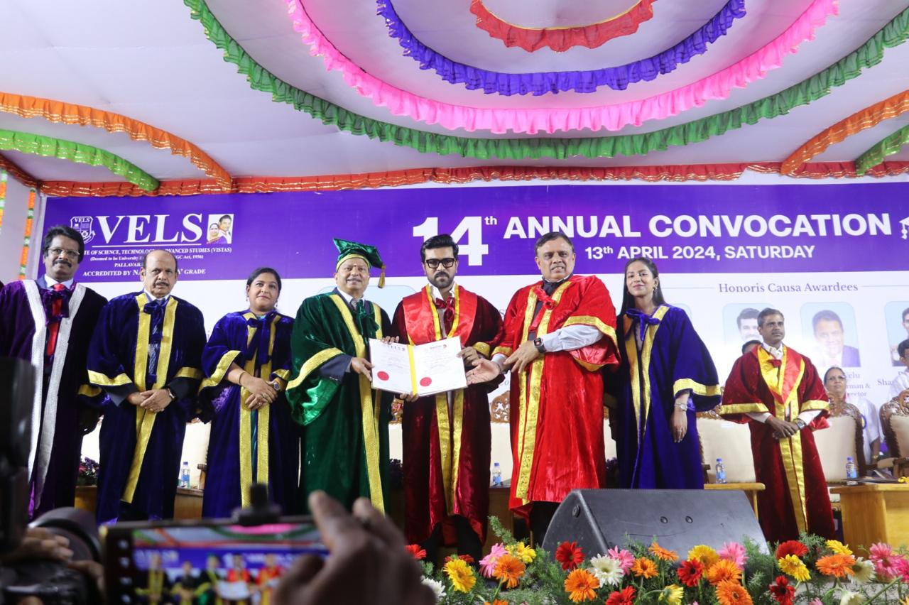 வேல்ஸ் இன்ஸ்டிடியூட் ஆஃப் சயின்ஸ், டெக்னாலஜி மற்றும் அட்வான்ஸ்டு ஸ்டடீஸ் (VISTAS) பதினான்காவது ஆண்டு பட்டமளிப்பு விழாவில் நடிகர் ராம்சரணுக்கு டாக்டர் பட்டம் வழங்கி கெளரவித்தது!*