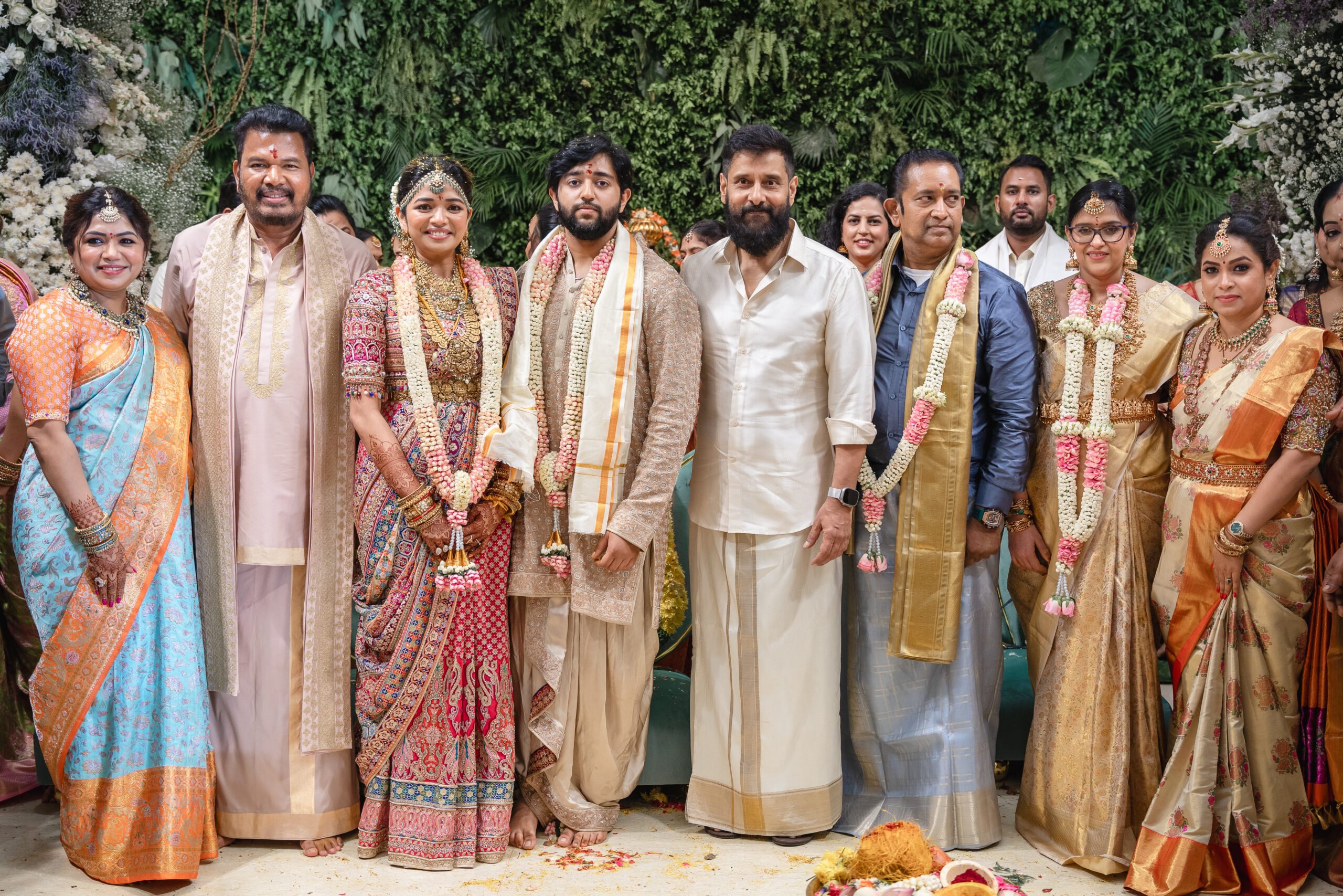 மணமக்களை வாழ்த்த வந்தவர்களை இயக்குனர் லிங்குசாமி, இயக்குனர் அட்லி, இயக்குனர் வசந்த பாலன், நடிகர் பரத், மேலாளர் தங்கதுரை ஆகியோர் வரவேற்றனர்